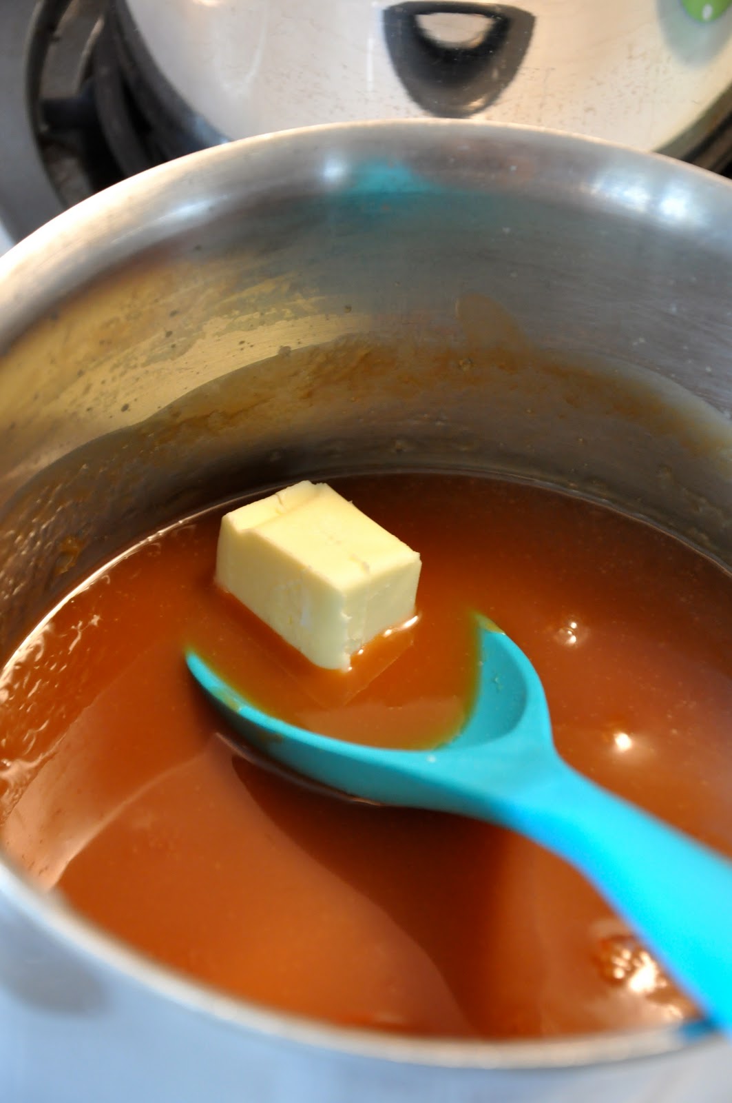 Return to the medium low heat. Keep stirring until the mixture is completely smooth and the butter has melted.