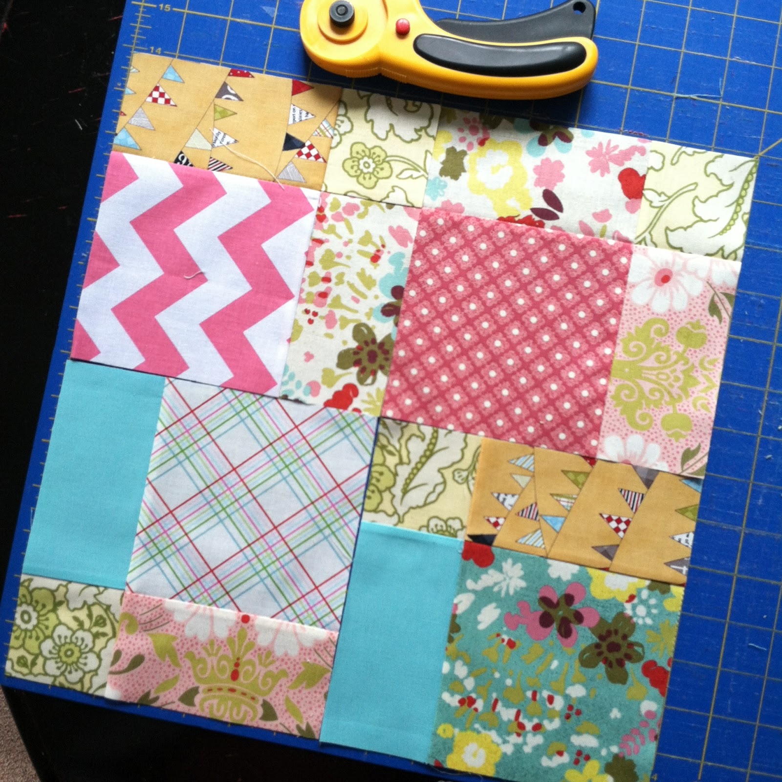 I am using a simple method that results in a quilt that looks much more complicated than it is. It’s called a disappearing nine patch….maybe a tutorial is in order because it really results in an impressive looking quilt with not much effort. The fabrics are randomly collected and put together on impulse but I am loving how they are coming together. 🙂
