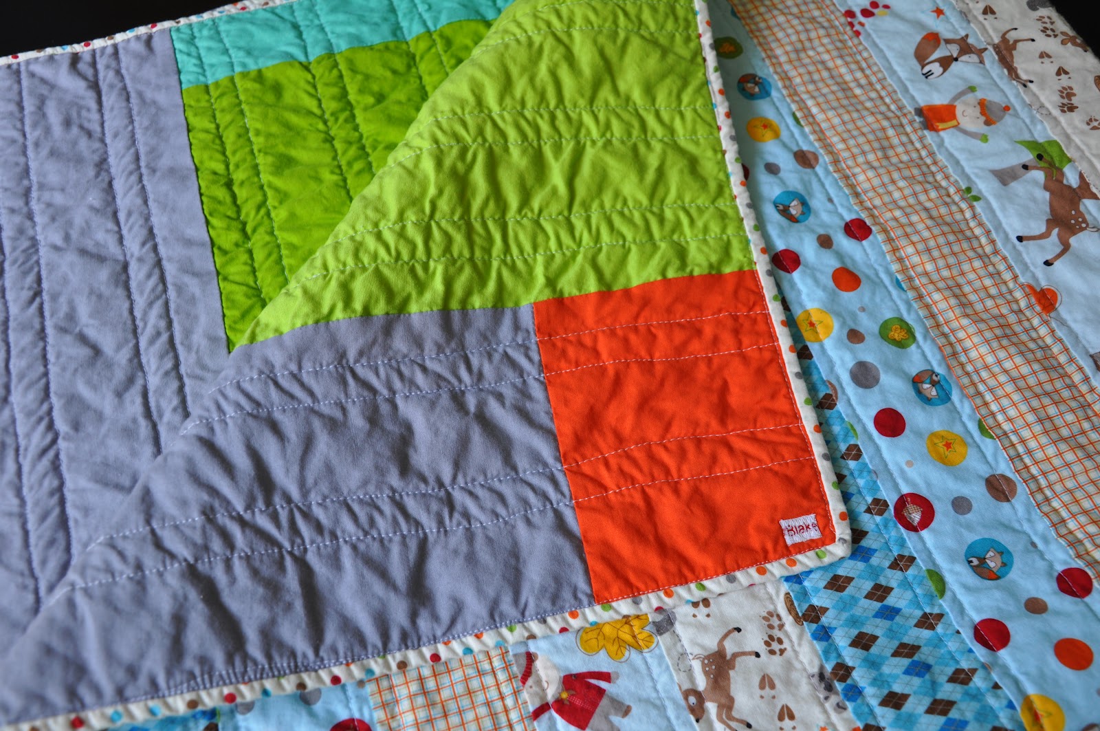It just so happens that this quilt is going to my nephew Blake…so a little tag from the selvedge was perfect.