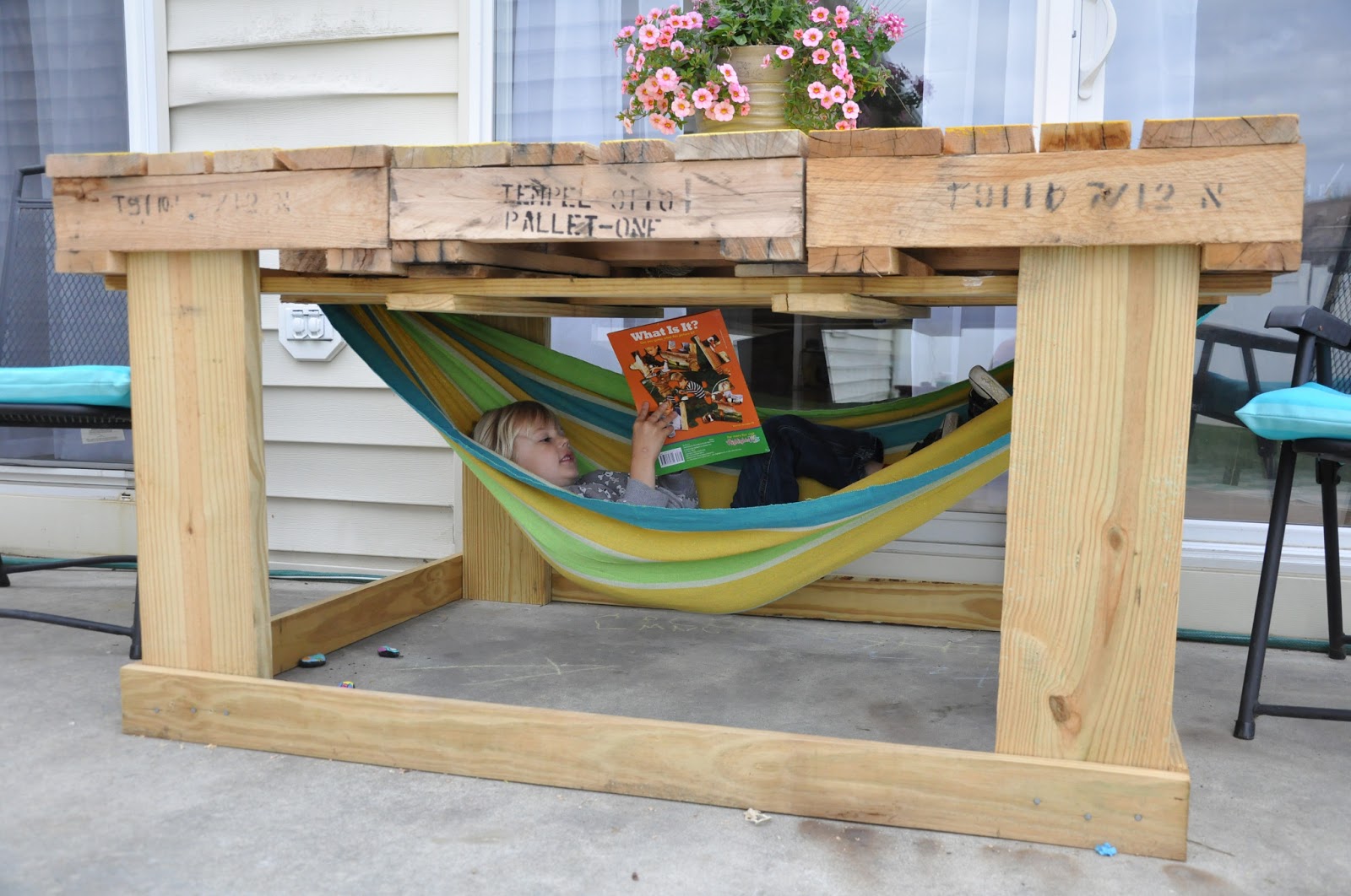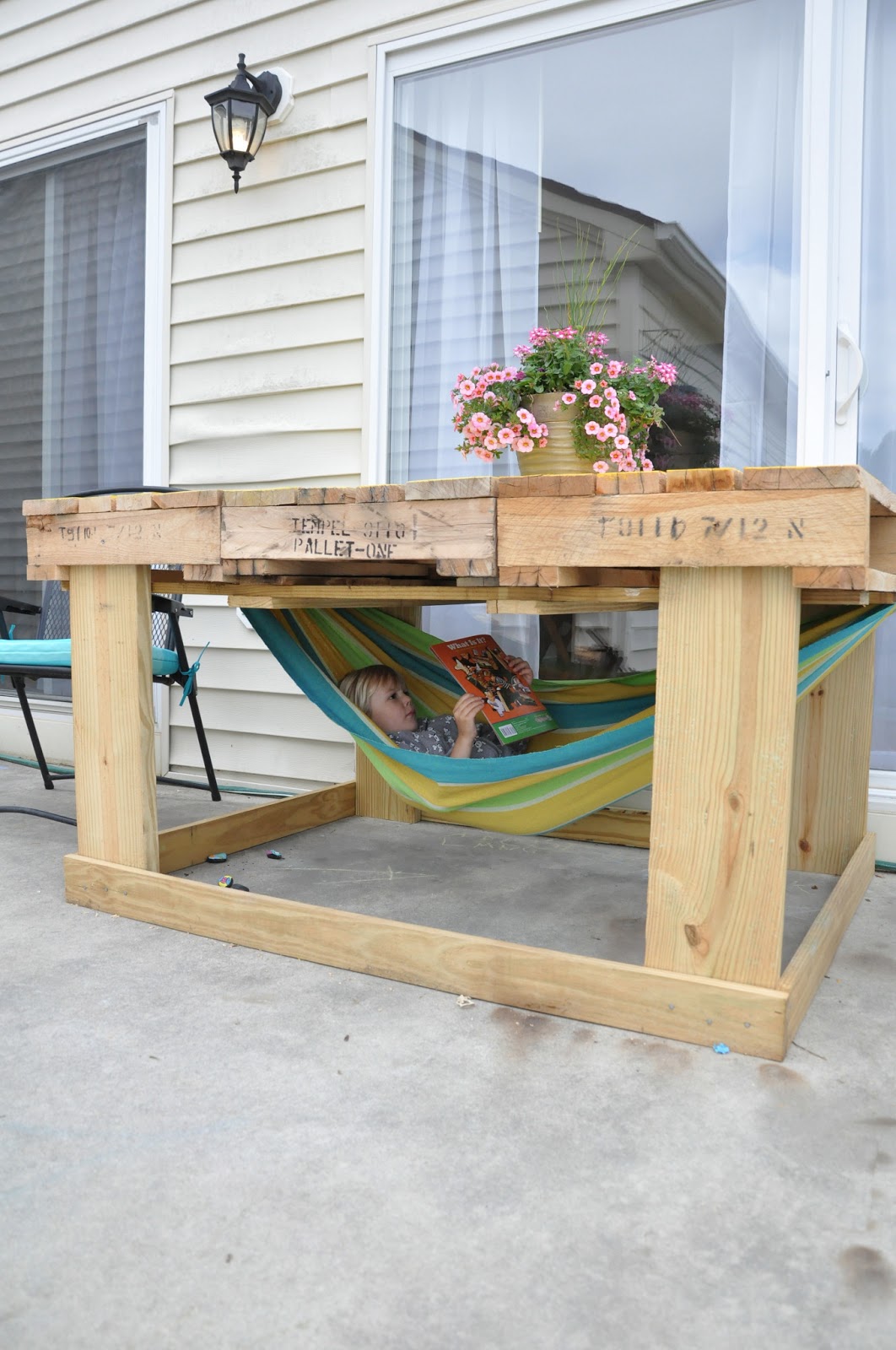 I can’t really offer any plan for building one…I started with the pallets face down (using six of them), figured out a way to frame them all together, nailed and screwed it all together until I was sure it was stable.