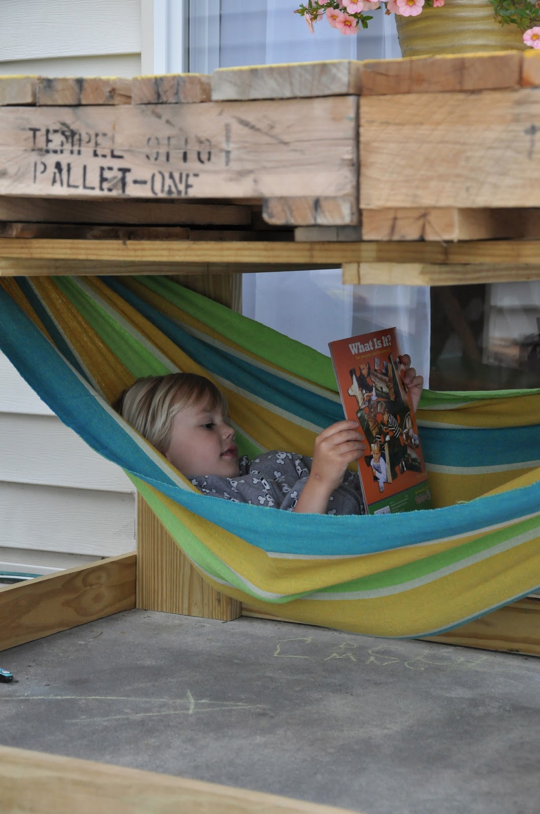 The boys immediately started using it as a fort, the perfect size for one! I took it one step further and added a hammock underneath that they LOVE to hang out in, especially Aaron.