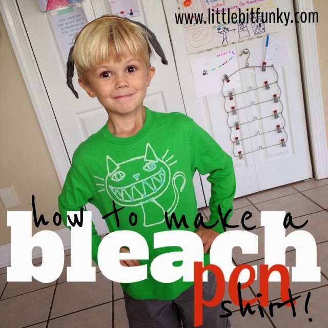 All you need is a plain colored cotton shirt (above, from Target), a bleach pen (found at Target in the laundry department) and to know or have the image you want printed out.  I googled “funny cat clip-art”.
