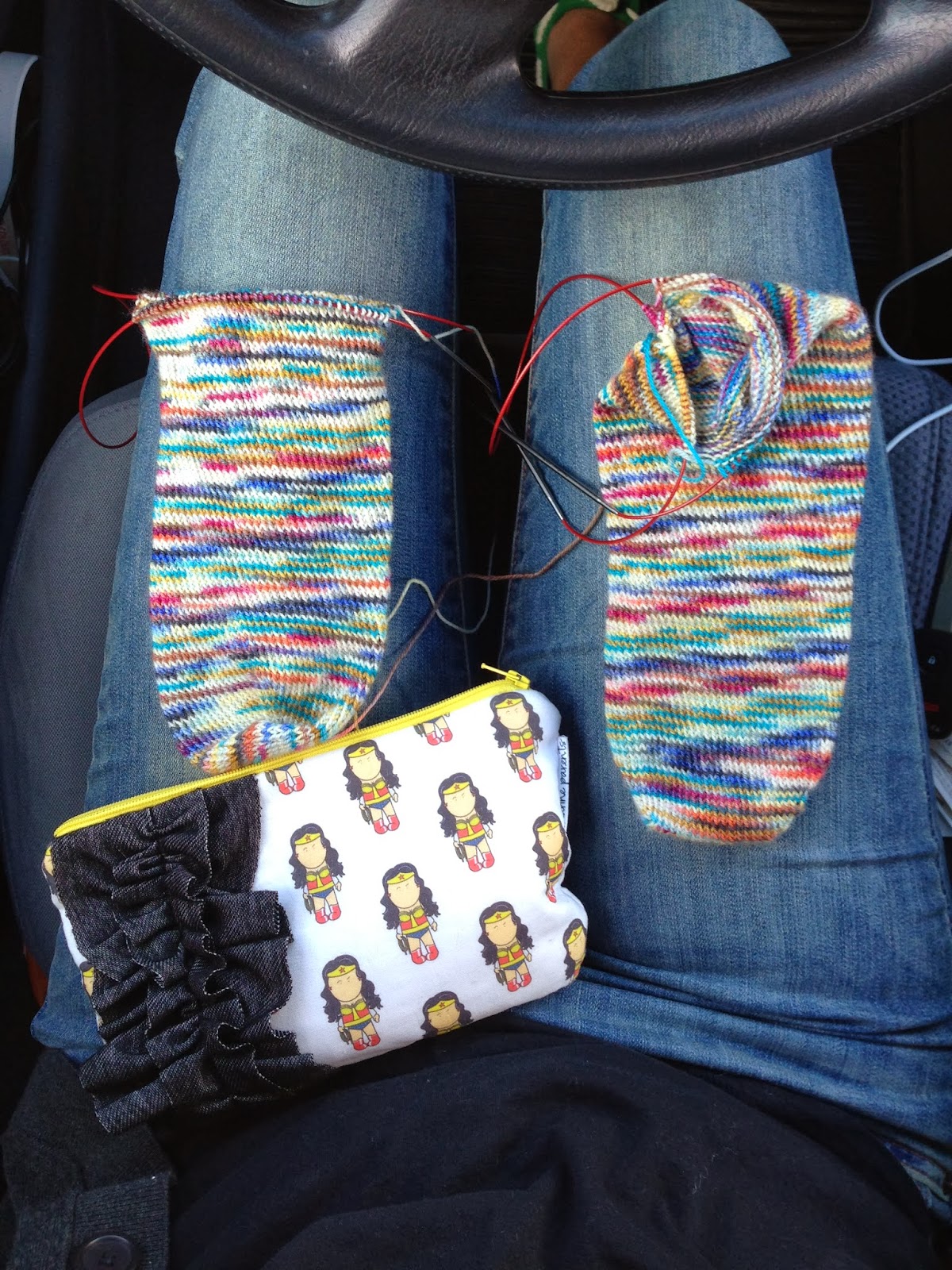 I wait in cars a lot. It’s how I get some rows in on my socks every day.