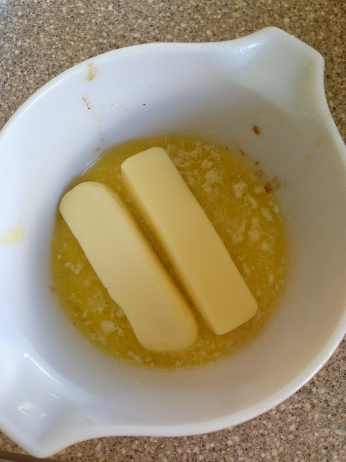For the cinnamon goodness part, you will want to melt your butter to about this point, somewhere between softened and melted. Too much either way and it doesn’t as nicely.