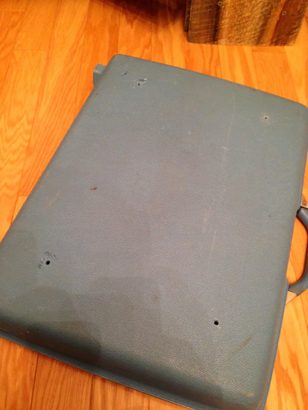 Then I just screwed my legs in and put the caps on! I measured the inside of the suitcase and added a couple of inches to make the cushion, not too stuffed! If your legs don’t have caps you may just have to screw them into some scrap wood or something. The cushion covers my screws and they can’t be felt through it.