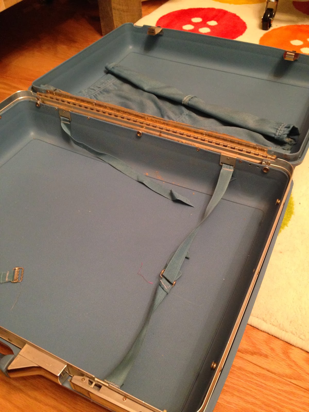 First, the dismantle.  I removed all the “soft parts” like straps and such.  Take some time to look over how the suitcase is held together…