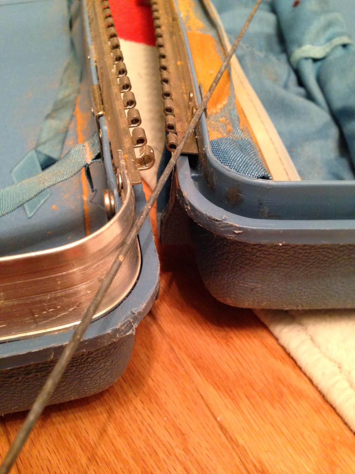 First, the dismantle. I removed all the “soft parts” like straps and such. Take some time to look over how the suitcase is held together…