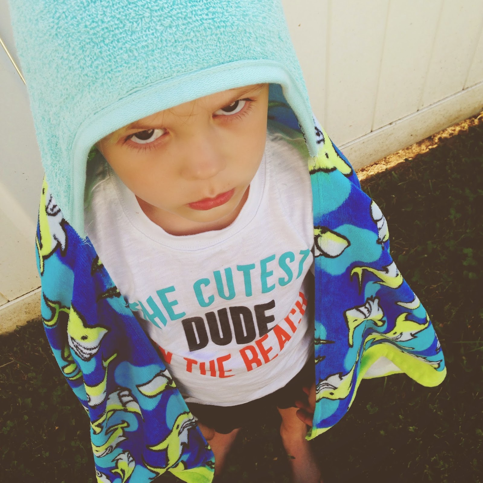 Clearly he is pleased about his new towel. Can’t you tell?