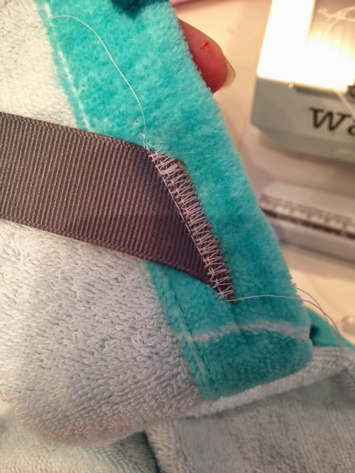 Add a couple of “handles” to the top corners to make your towel extra snuggle-able!