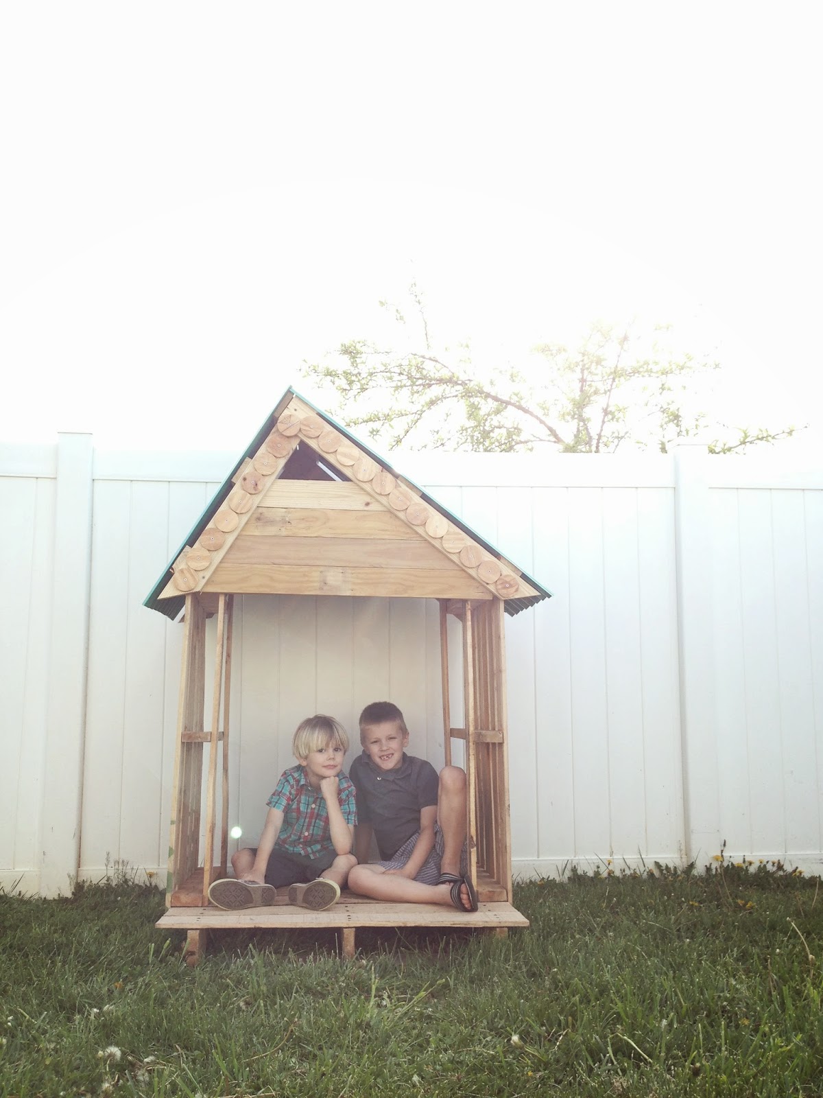 We still have some work to do, adding another pallet to the back, a little railing, some flower boxes (for string beans to grow and cover the house) and maybe a mailbox but we think we have a great start!
