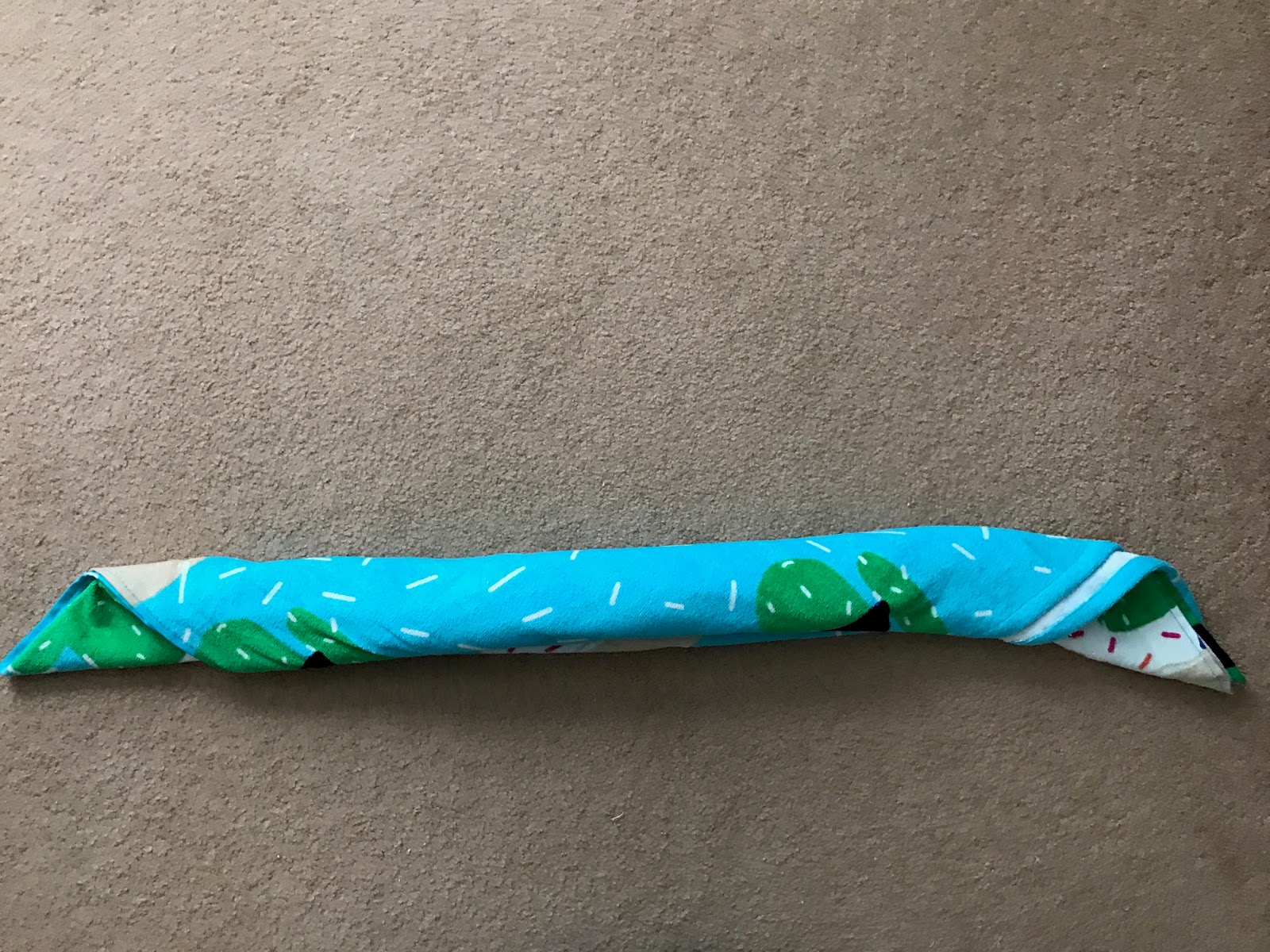 Fold your beach towel in half to make a square.