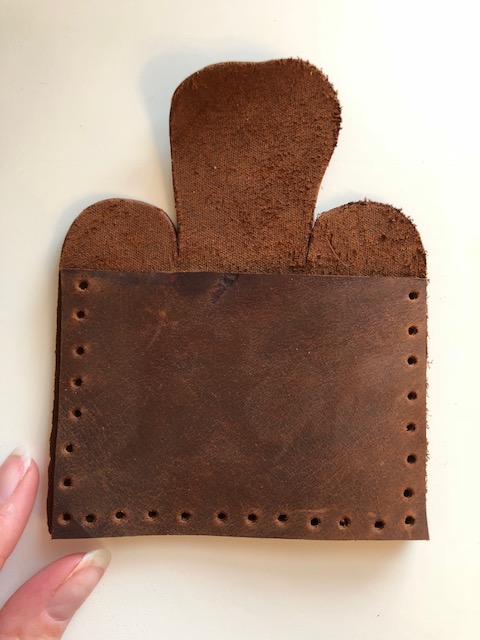 Punch evenly spaced holes through both pieces on all three sides as shown.