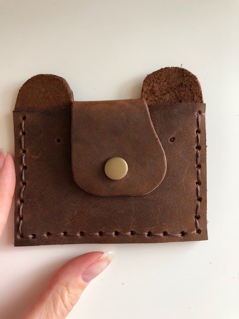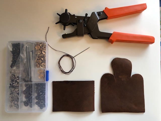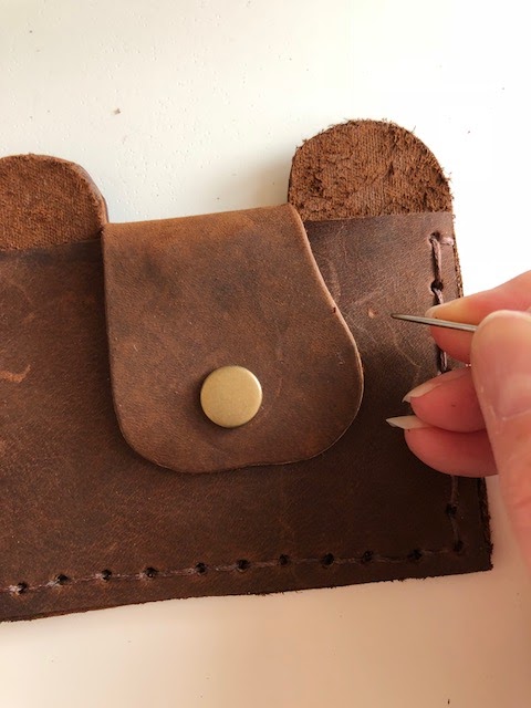 Add your snaps (the kit will come with directions). You can also punch the eyes now too. See below for placement.