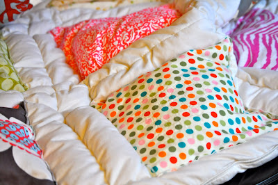 & I love your quilt! My grandma did the same thing for me when I went off to college(squares on a down comforter) & I loved it as though she had taken half of her life to make it! Yours is gorgeous and dreamy! xo