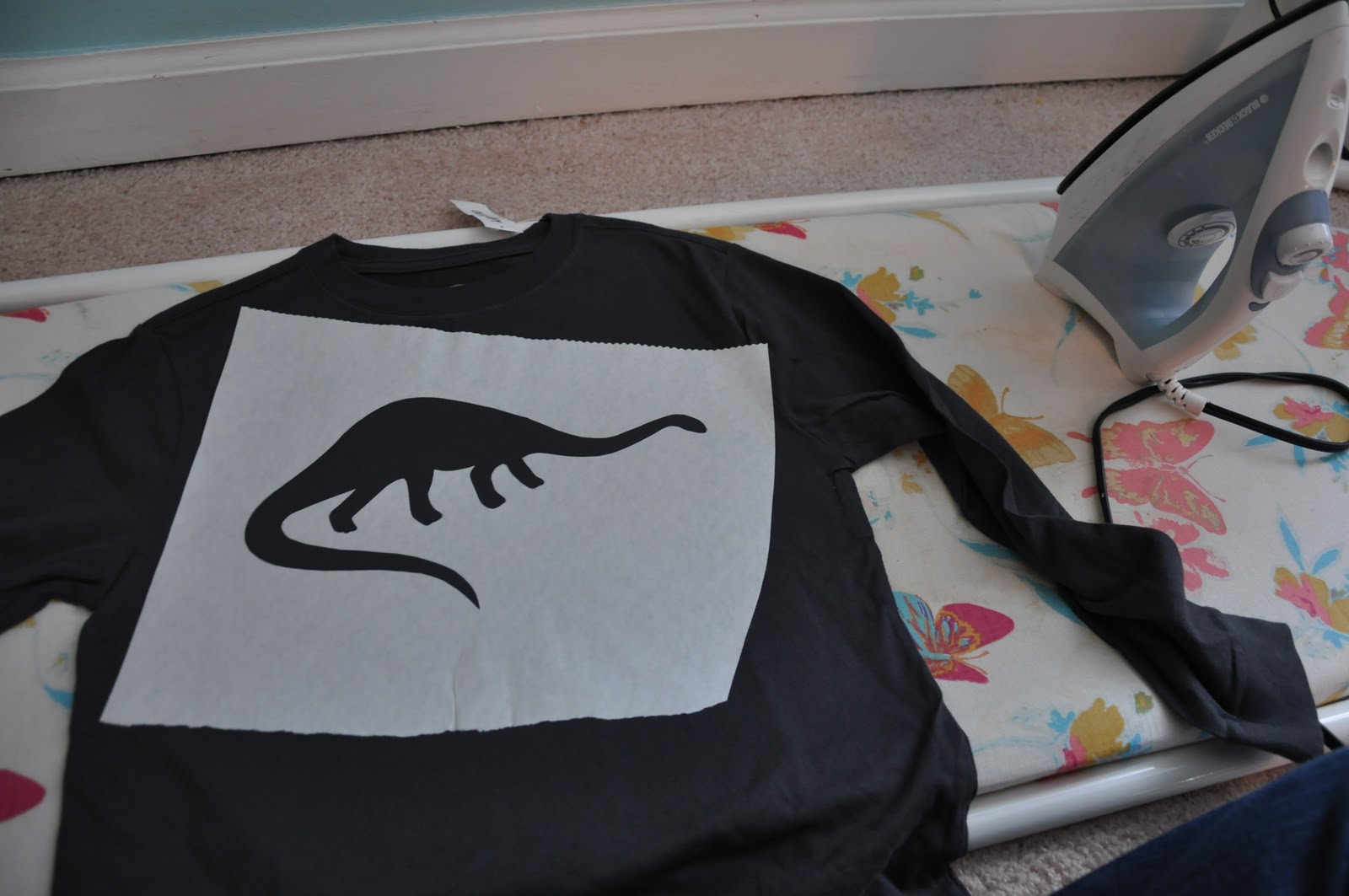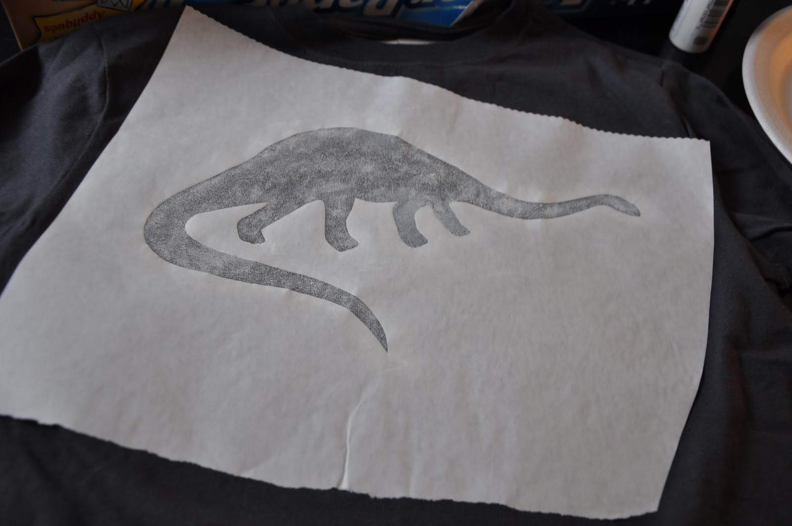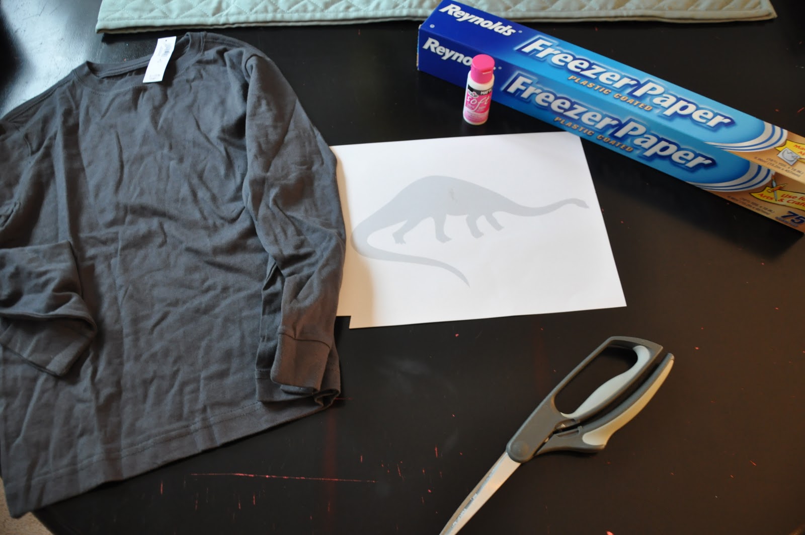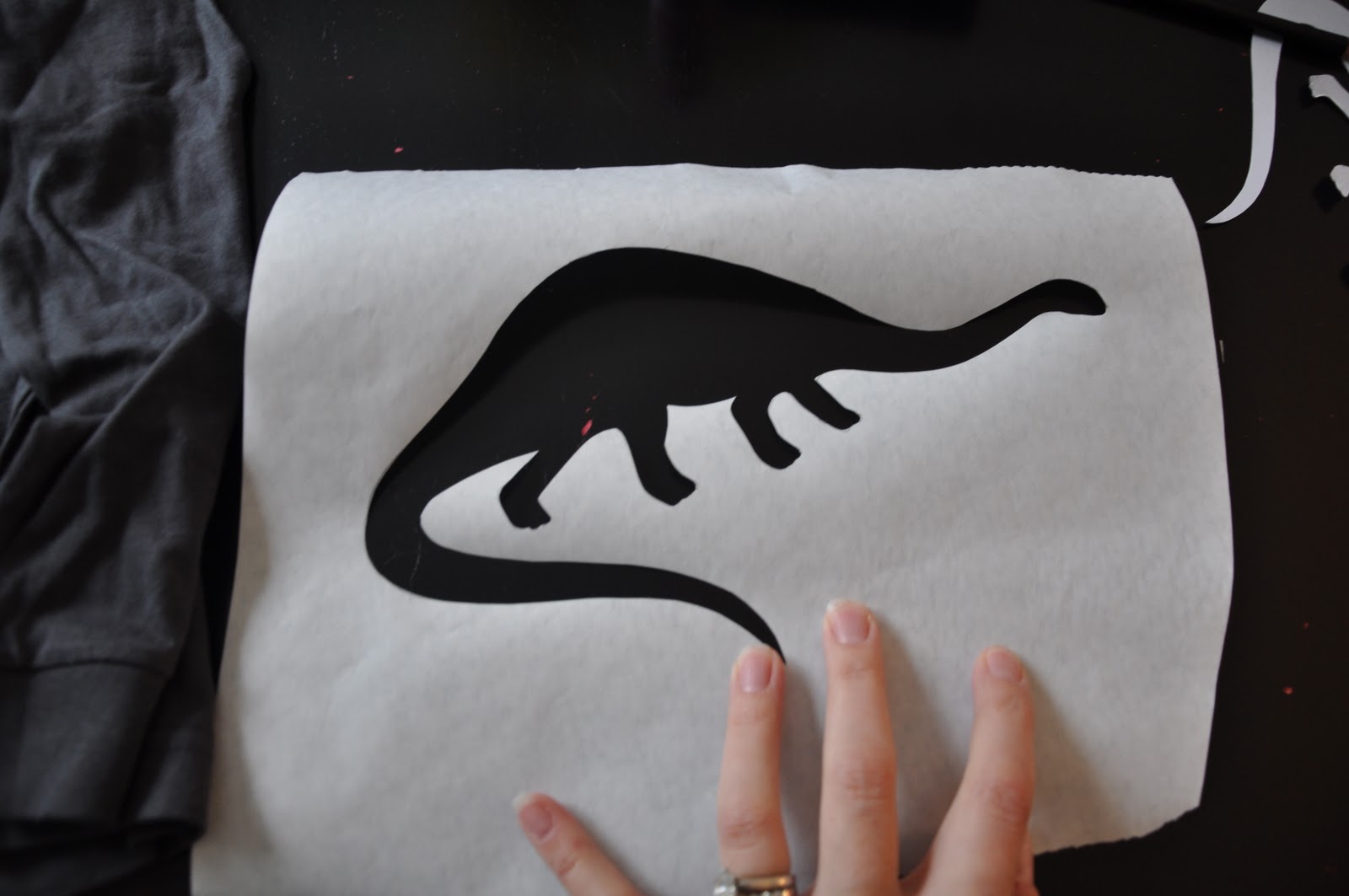 (for this example i googled an image of a dinosaur and printed it out on cardstock–if you have a cricut you can cut your freezer paper out right on the cricut!)