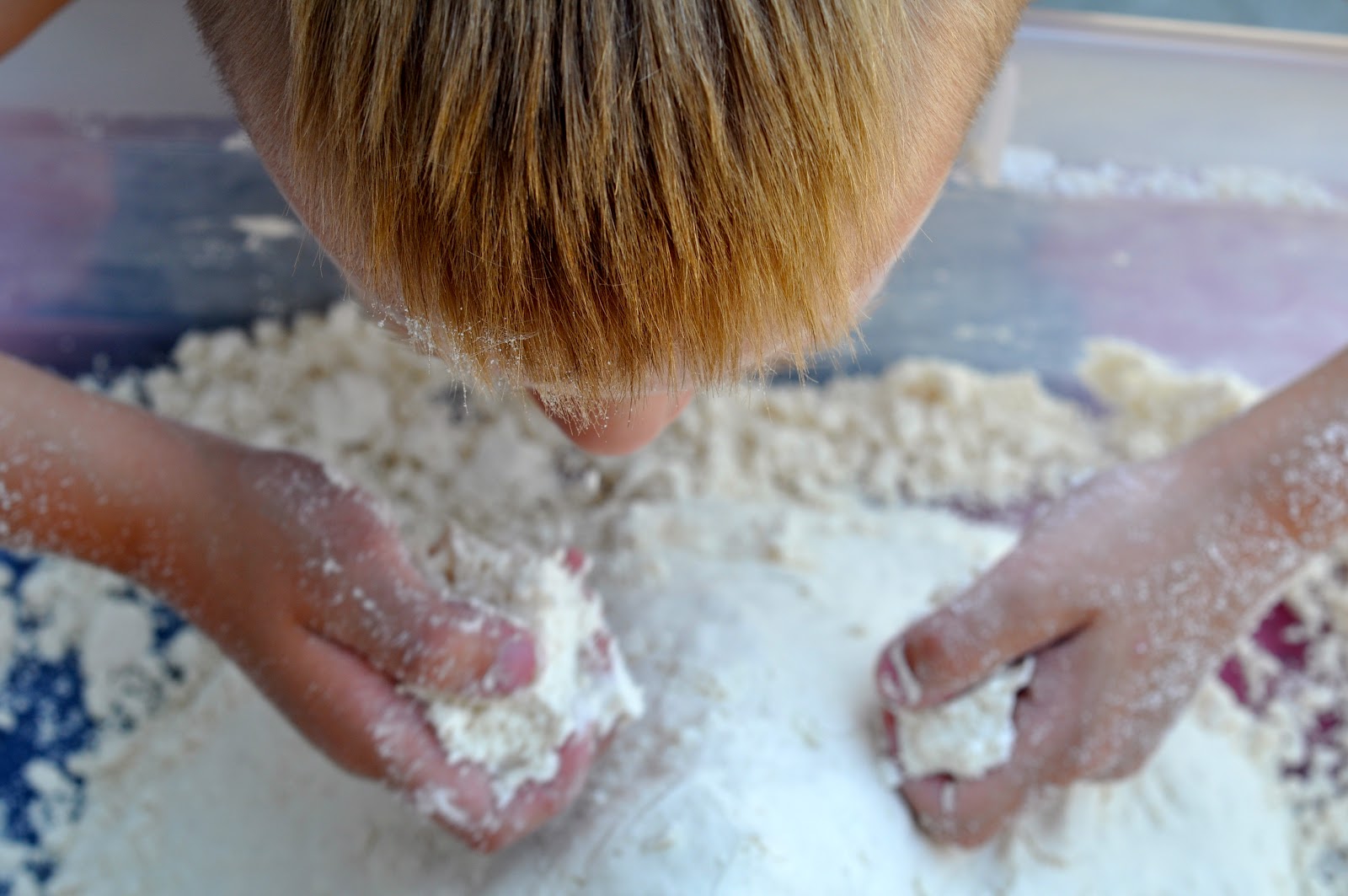 All you need is 8 cups of flour and 1 cup of baby oil. Mix together. Play (outside)!.