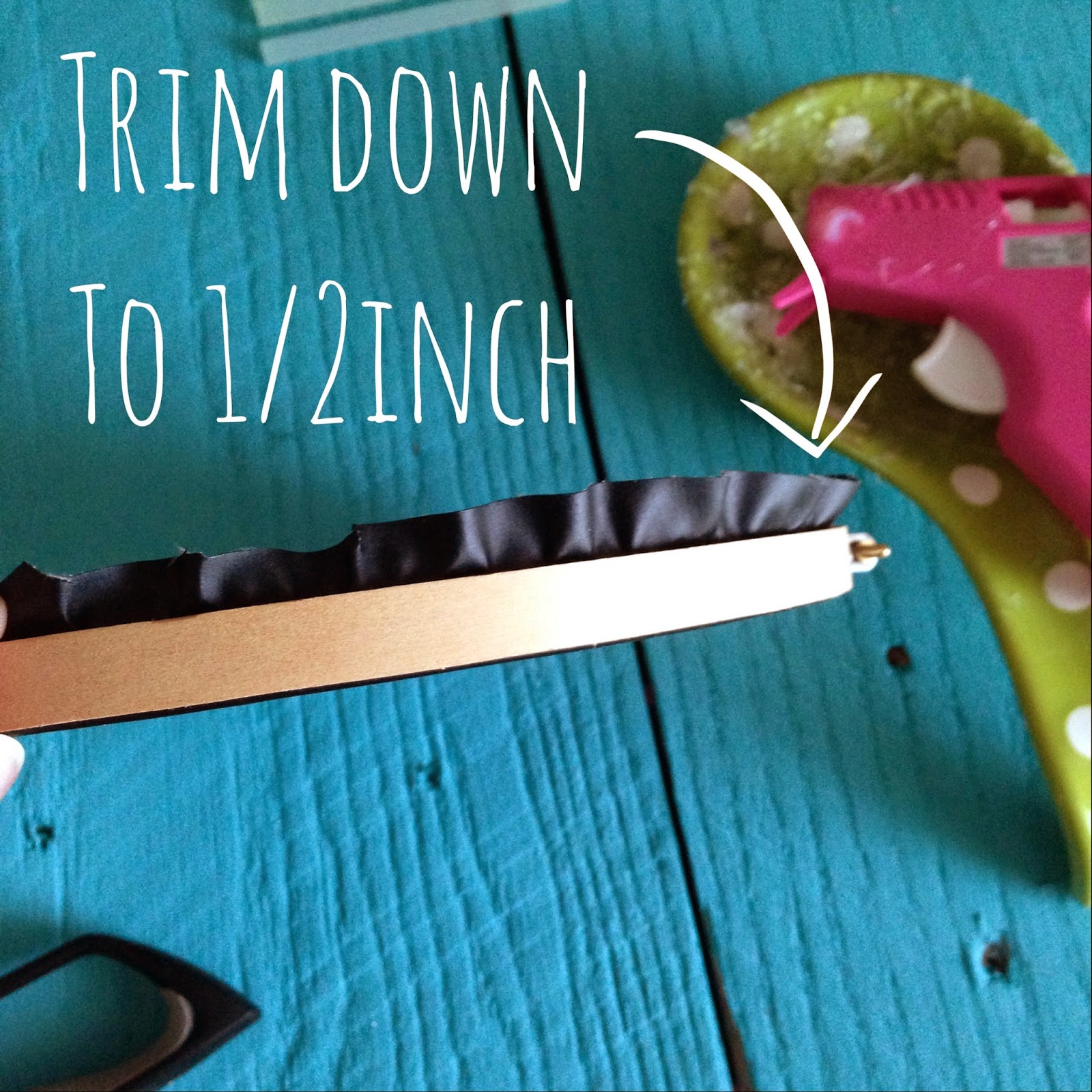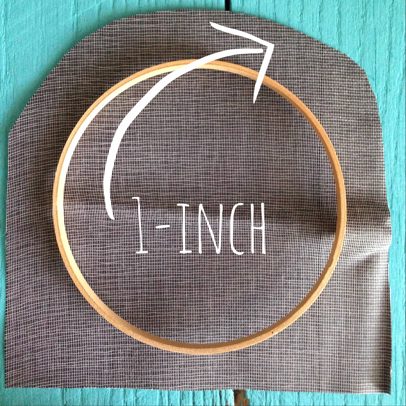 Trim the chalk cloth down to less than the width of the hoop…about 1/2in.