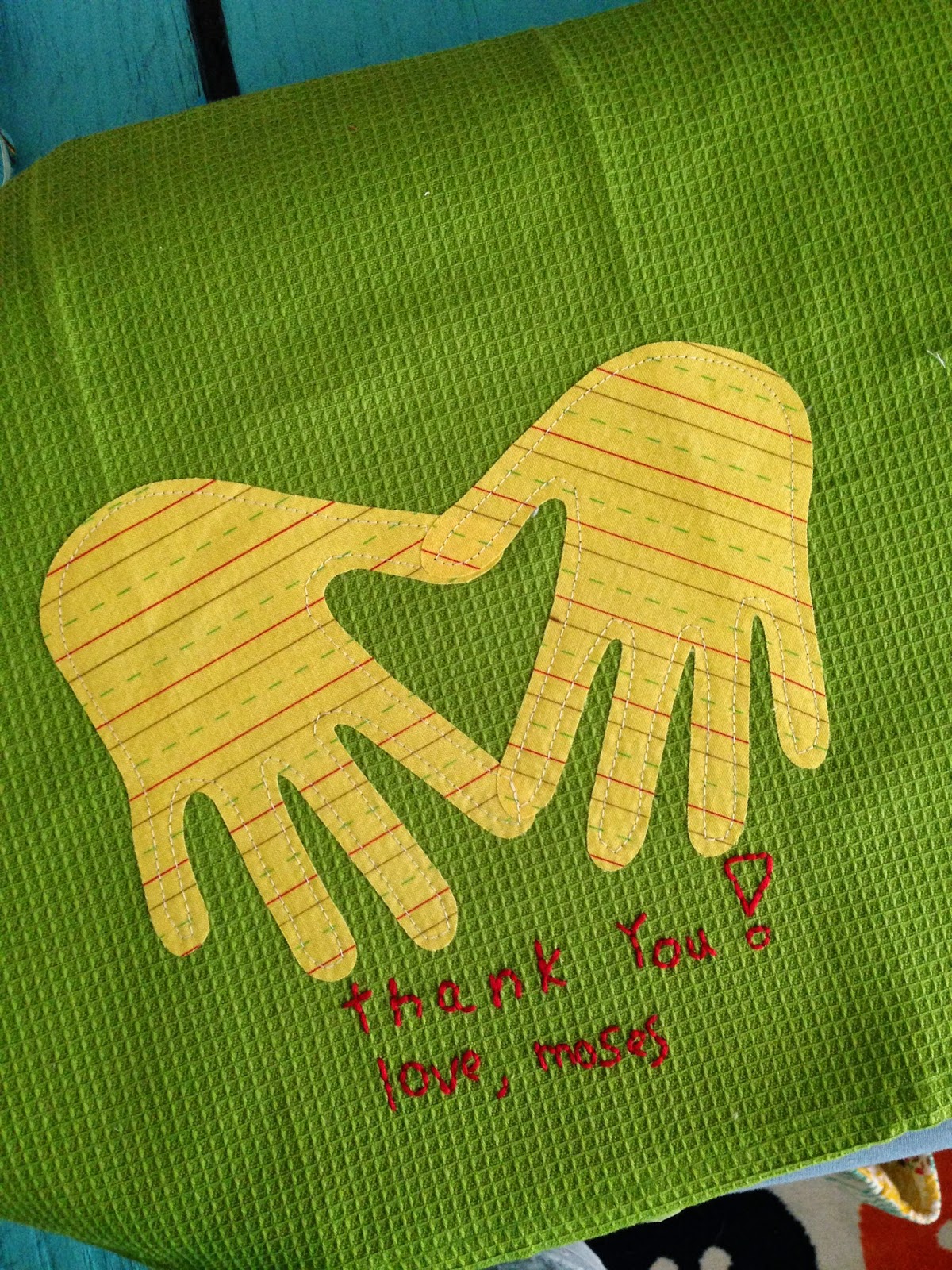 When you are done you can iron on a lightweight interfacing on the back to hide the stitches and make the towel more durable for using.