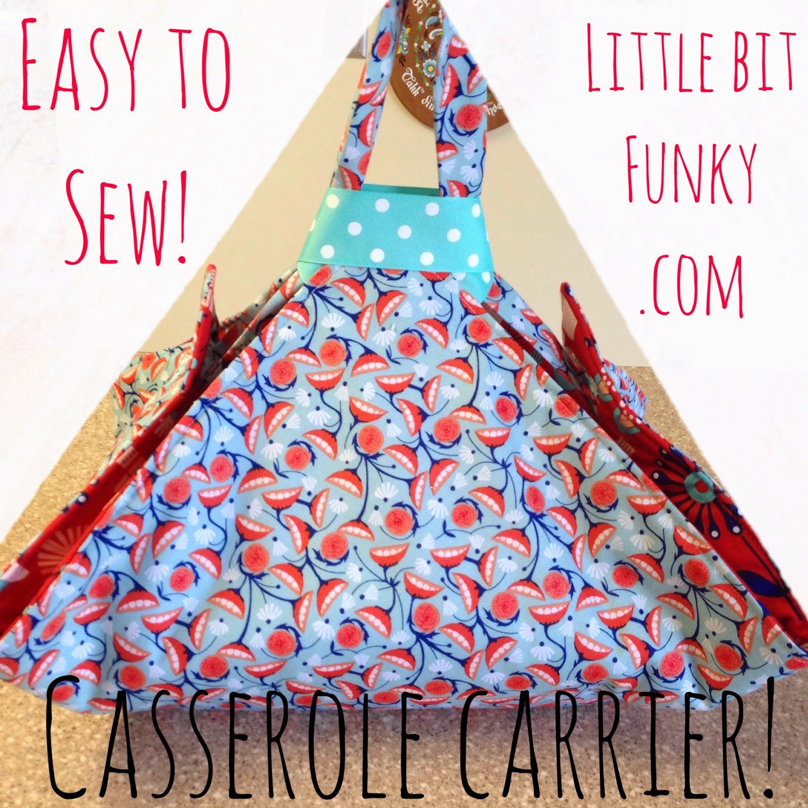 I’ve made several of these as gifts this year! You will not believe HOW easy they are to make and with cute fabrics, the personalization is endless. These carriers will carry just about any size dish you can find from a pie to a 11 by 14in! They are reversible, cute and quick!