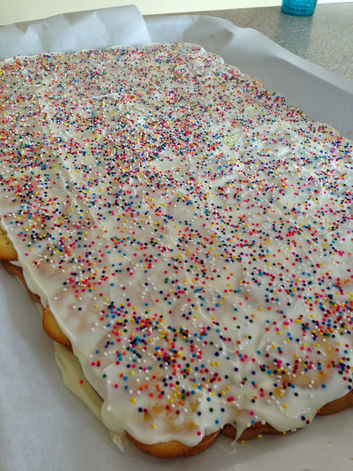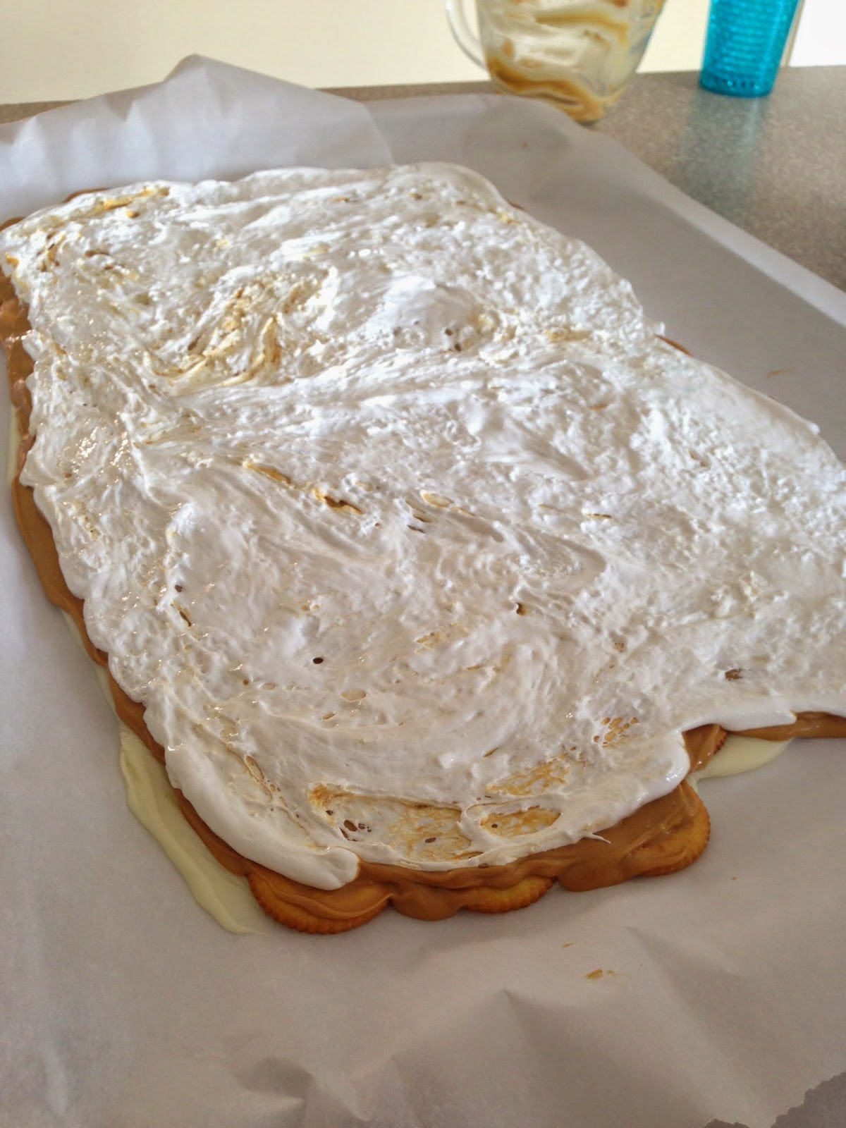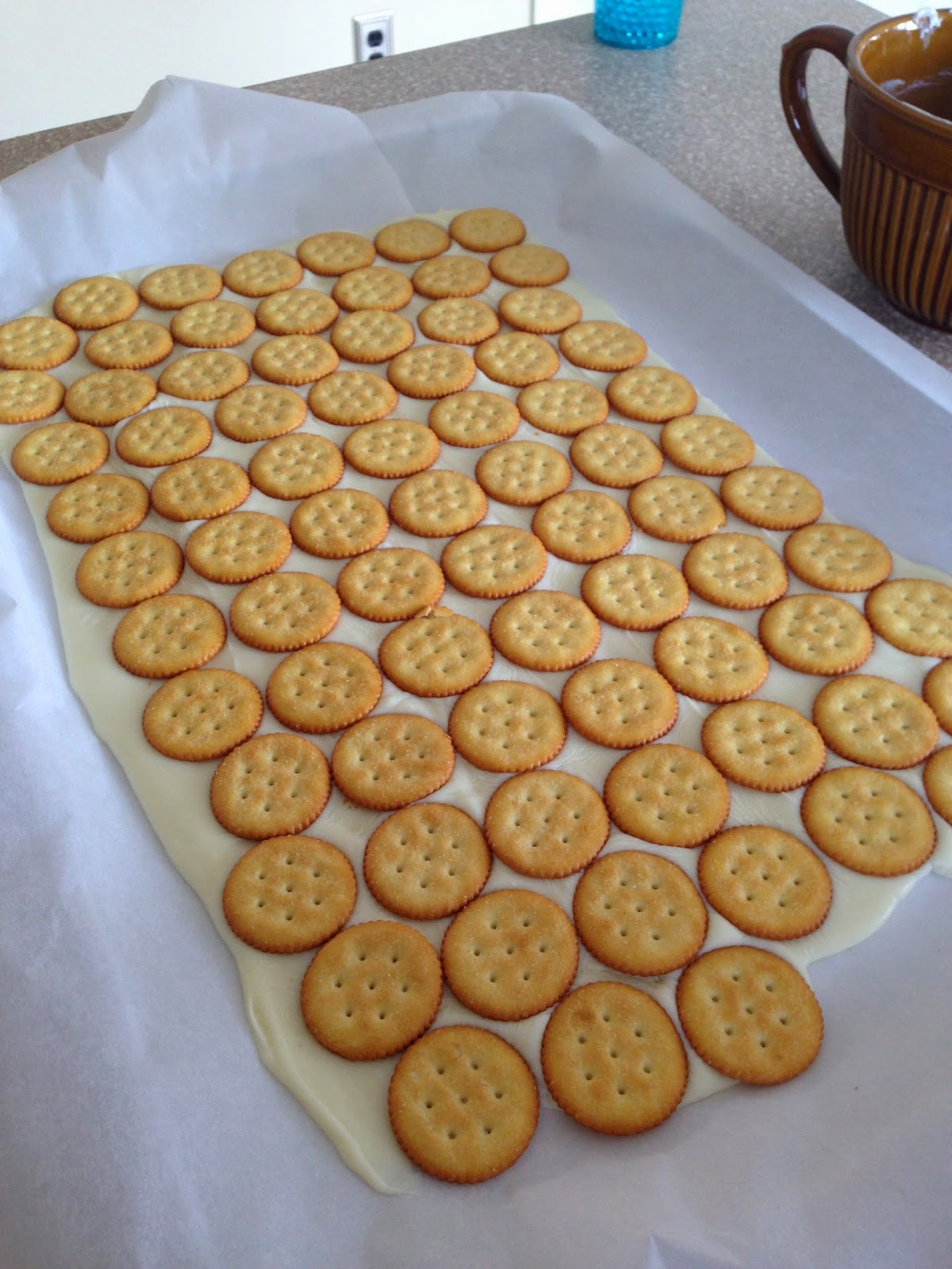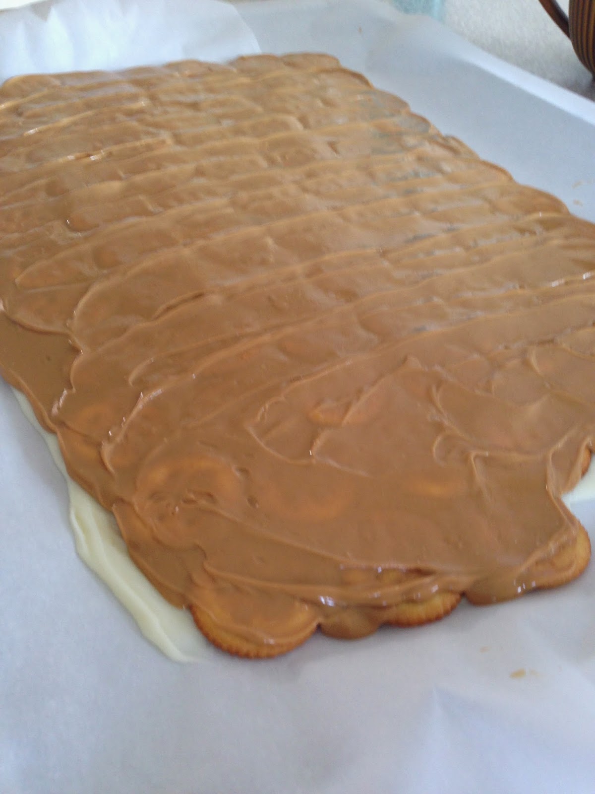 Melt the other half of candy and spread out on top of crackers, add sprinkles (because sprinkles make everything better).