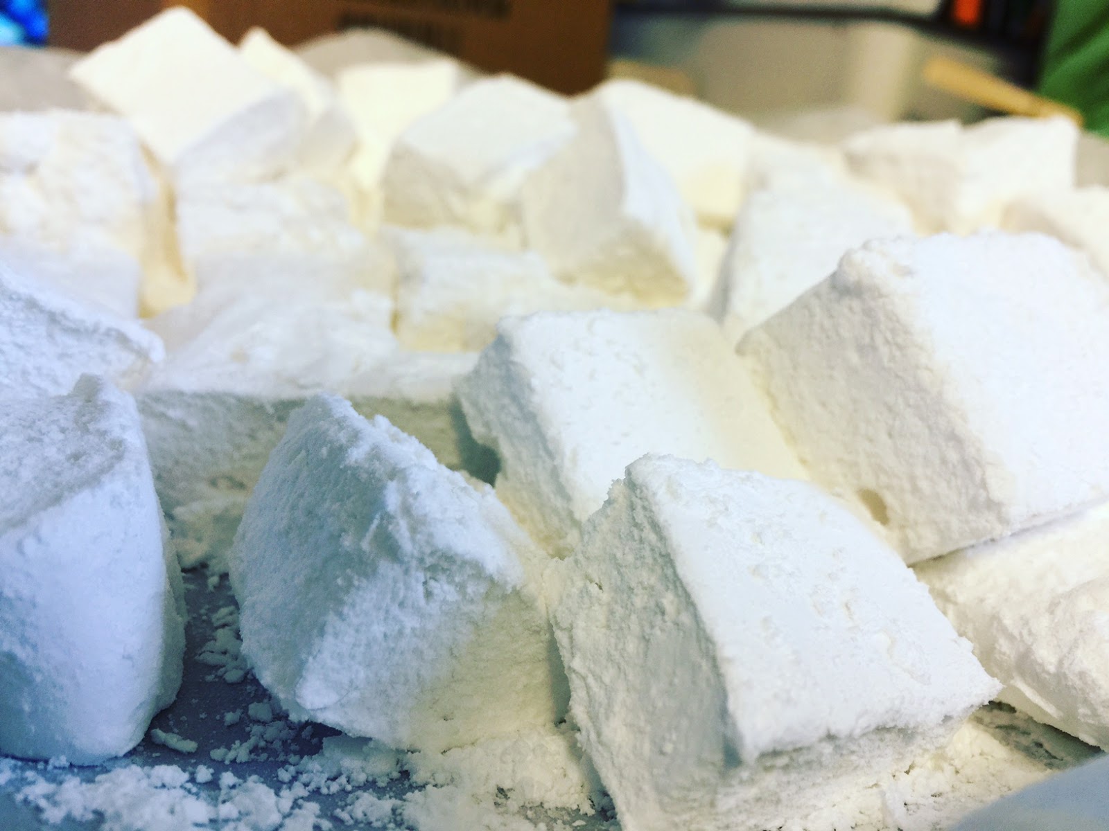 Once set, cut into squares using a pizza cutter lined with powdered sugar/cornstarch. Coat the exposed sides as you go with excess powdered sugar mixture. Store in an air tight container for up to three weeks.