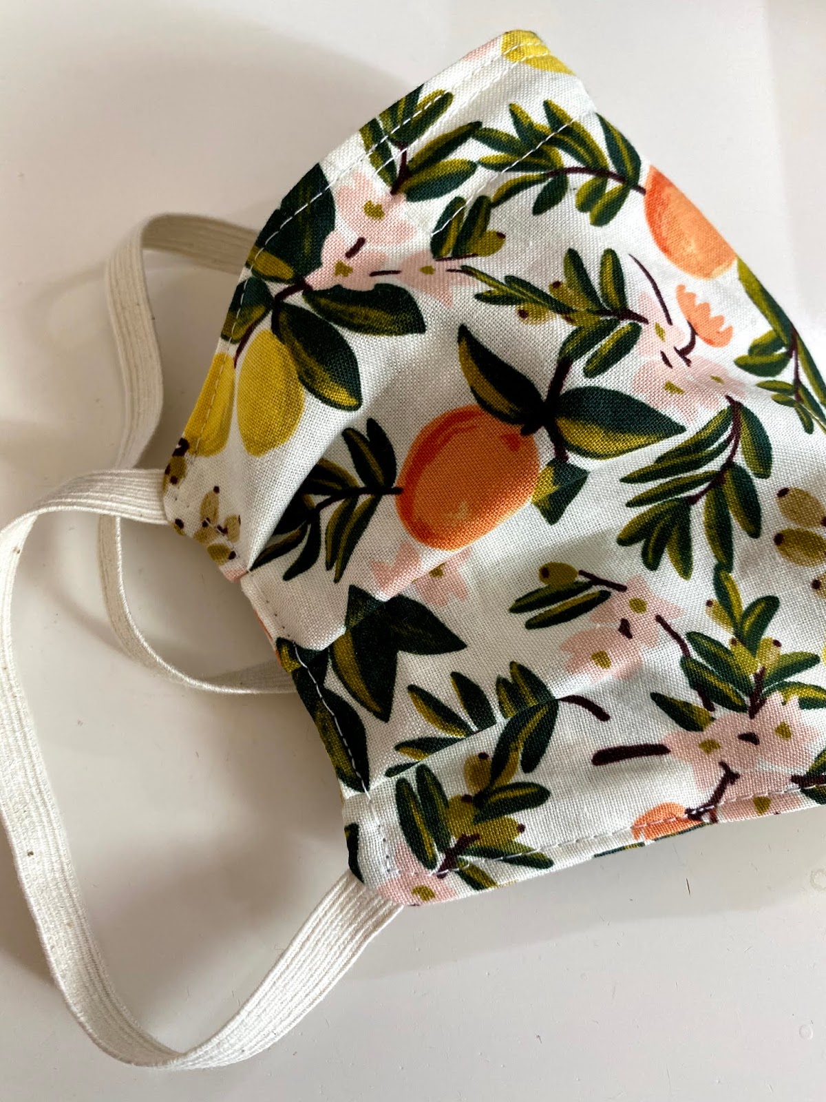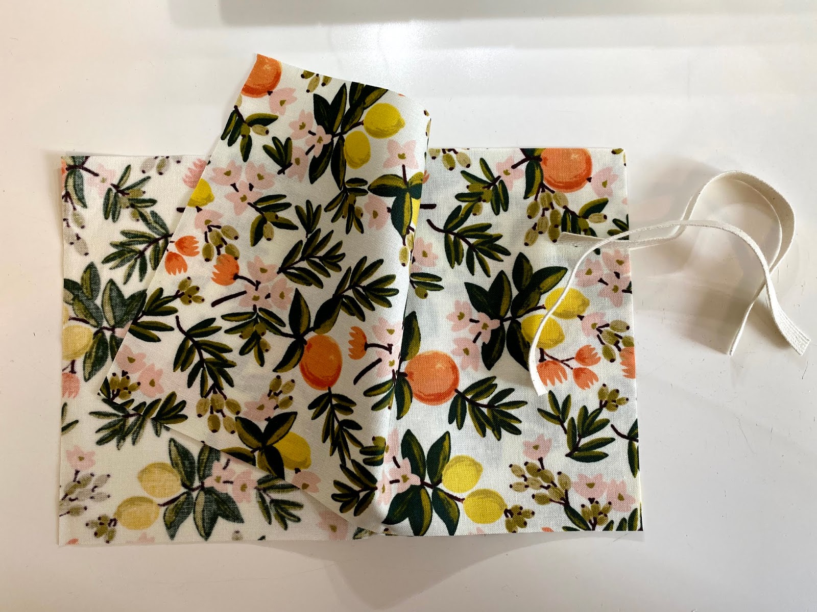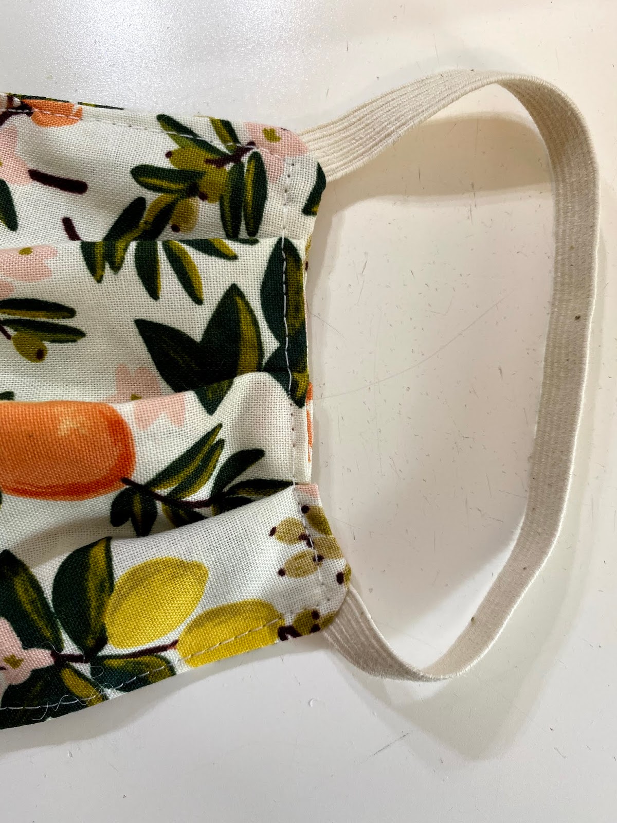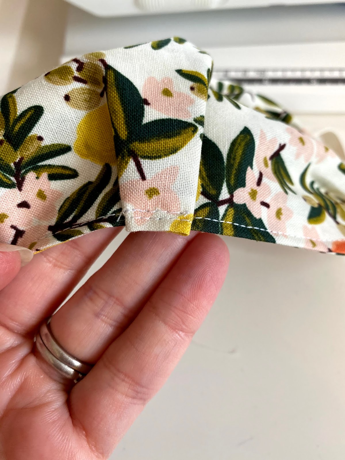 As you sew the opening closed, go around the entire mask, making three pleats on each side as shown in the photo above. Again, you can pin these or eyeball them as I have done.