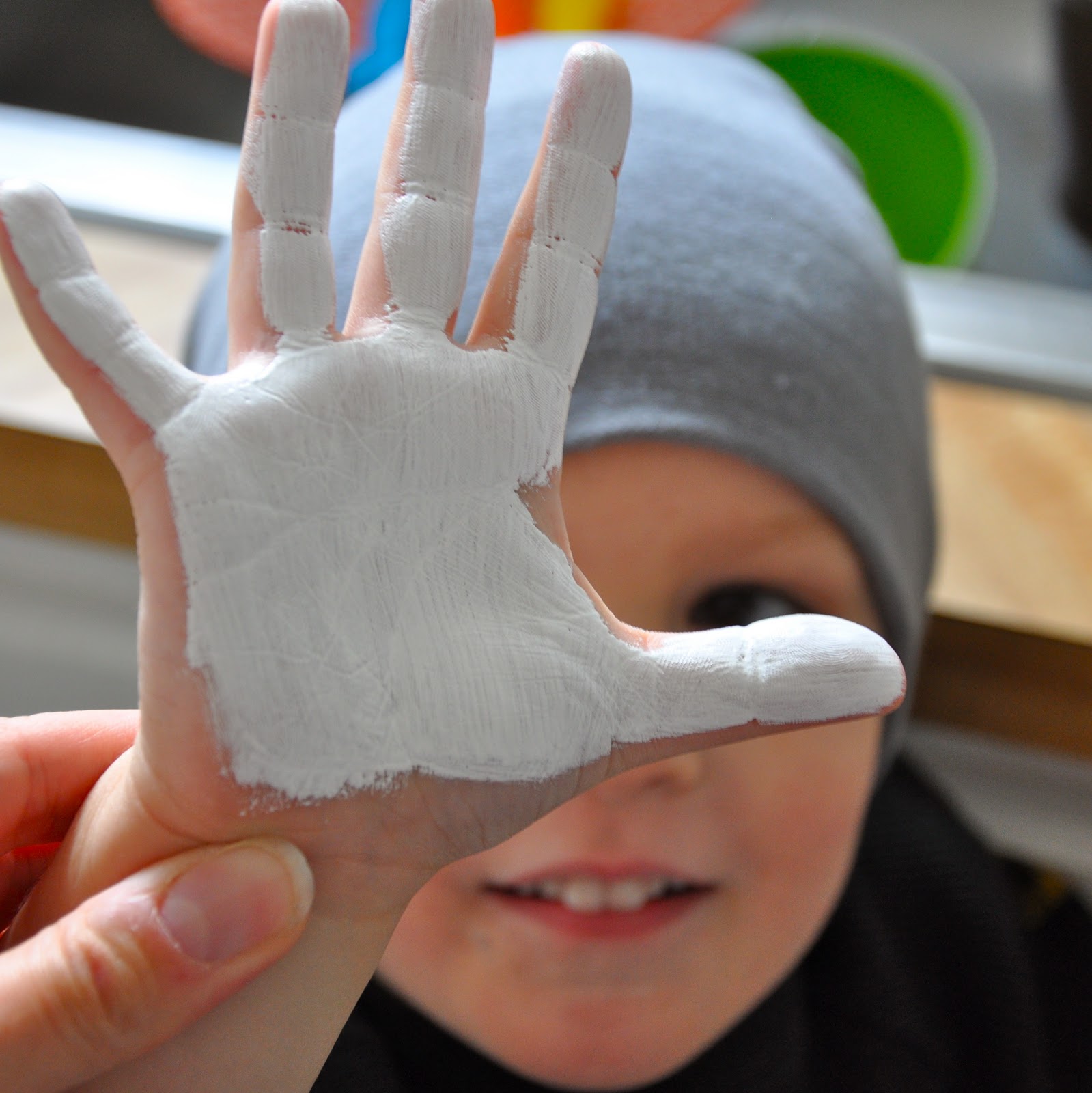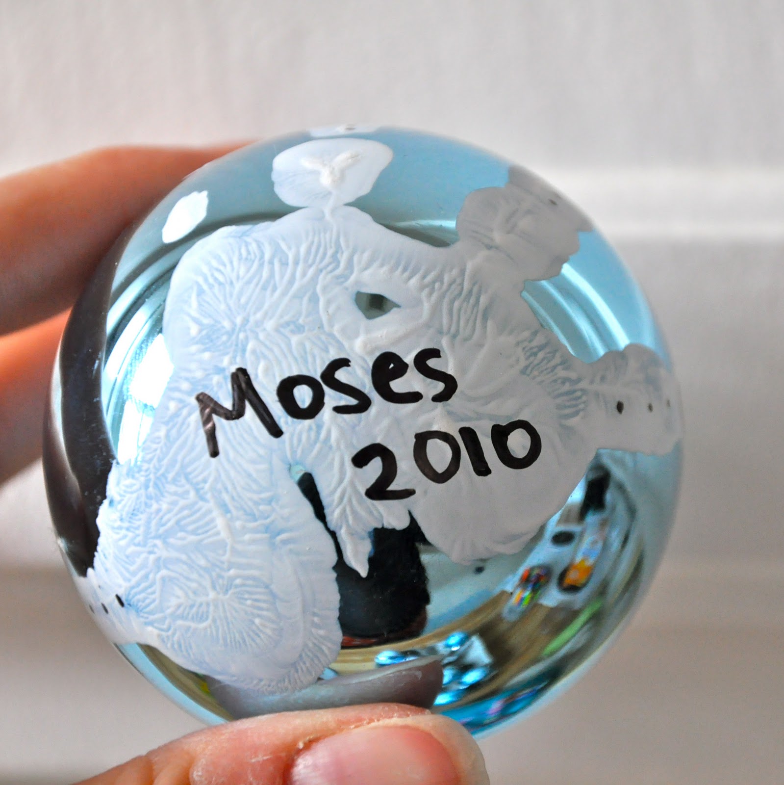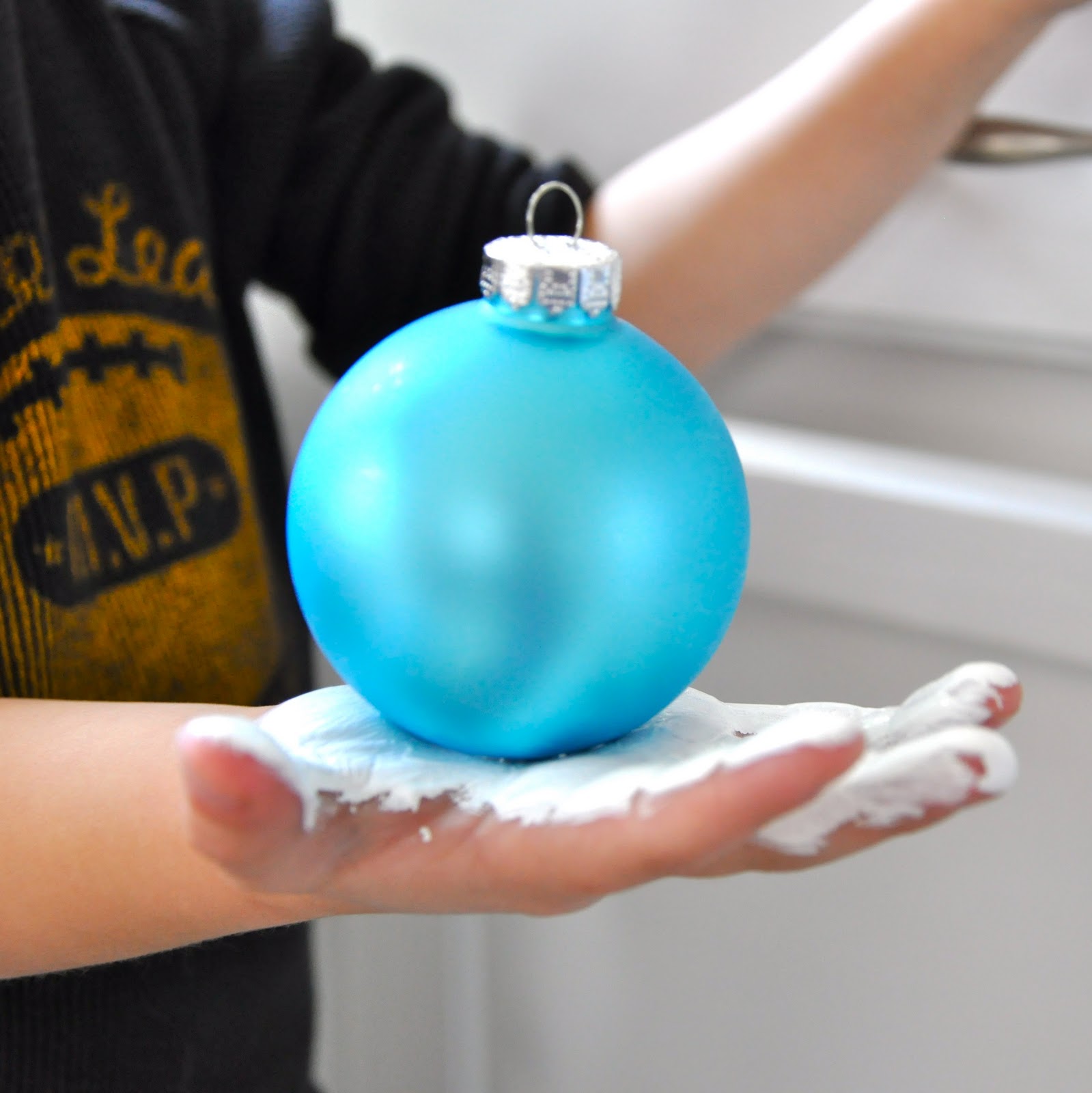 Repeat with all of your ornaments and children. A little tip...if you are doing two children...maybe do the left hand of one and right hand of the other...makes it a little easier to keep track of tiny hands. :)